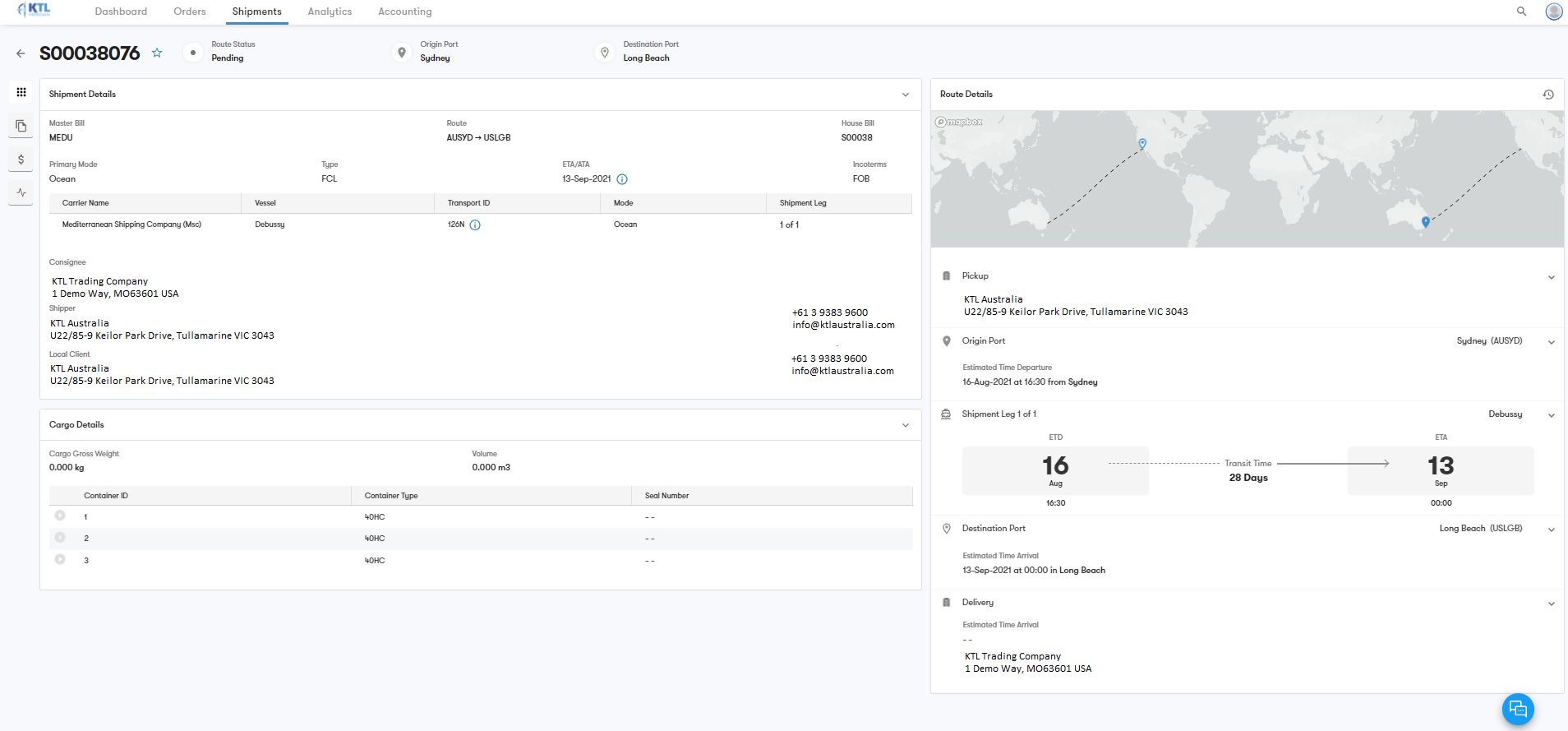 - Upload your shipment documents directly into KTL's operating system